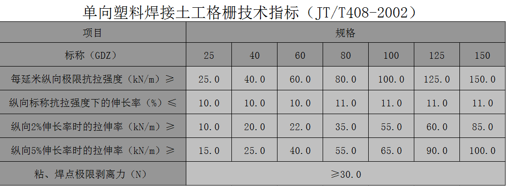 PP焊接土工格柵是一種在聚乙烯、聚丙烯拉伸帶中加增強(qiáng)性纖維增強(qiáng)加筋,然后焊接成“#”字結(jié)構(gòu)的新型環(huán)保綠色建材,可分為單、雙向粘、焊土工格柵。該產(chǎn)品具有強(qiáng)度高、變形小、耐腐蝕、壽命長(zhǎng)、施工方便快捷、成本低等優(yōu)點(diǎn),鋪充定位平整,尤其可以滿足各類工程100年以上的使用要求。