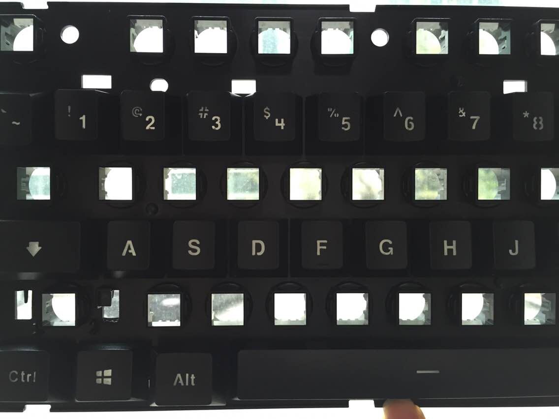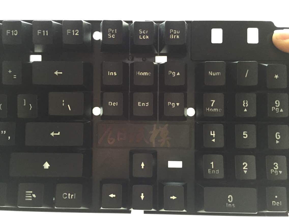 絲印其原理就是將一個(gè)特制的絲網(wǎng)覆蓋在空白的鍵盤(pán)上,其中有字跡的地方被鏤空,然后將油墨從上面刮過(guò),這樣在鏤空的部分就會(huì)印上字跡。